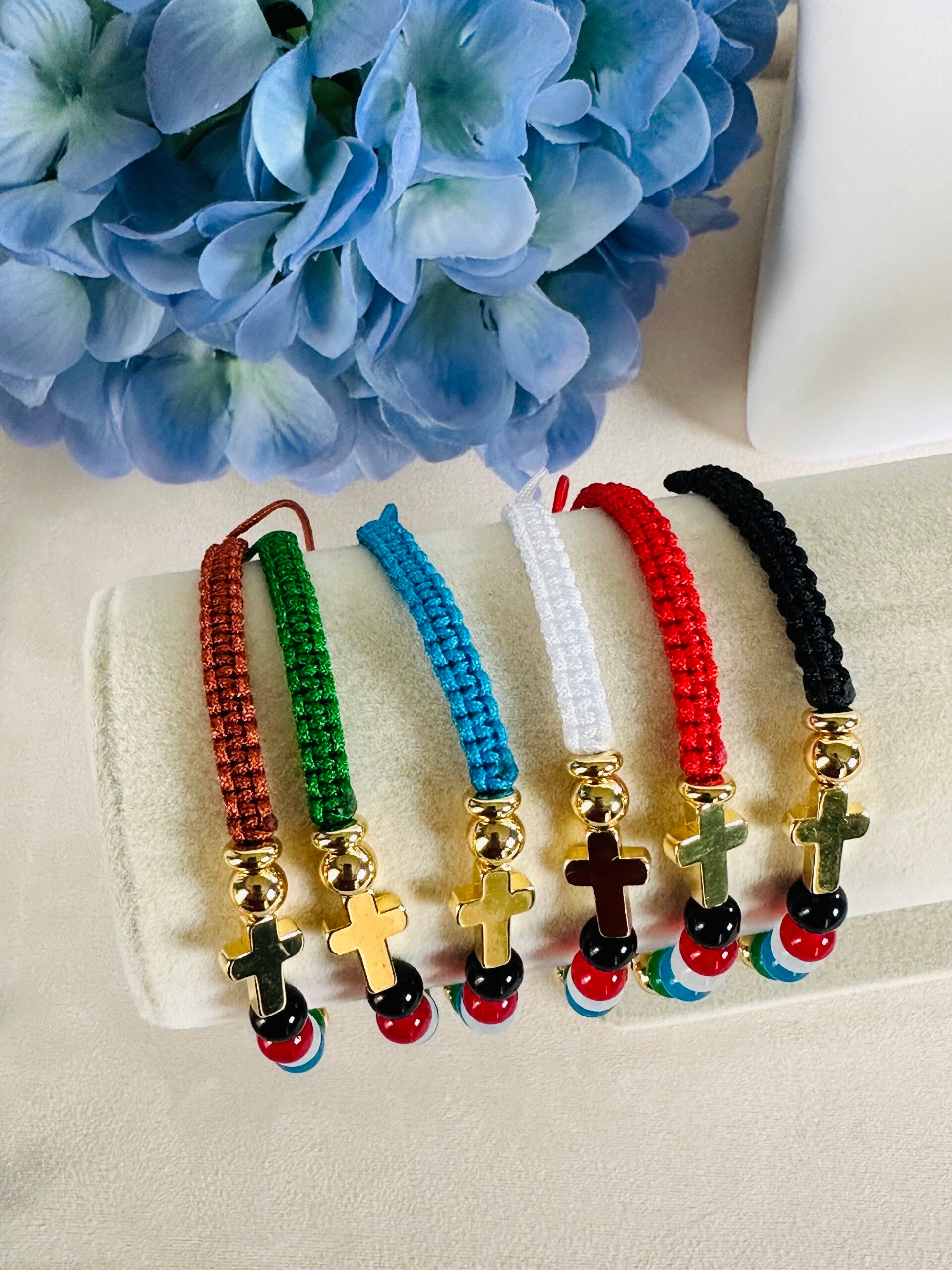 Hechas de hilo nylon con cuentas de cristal